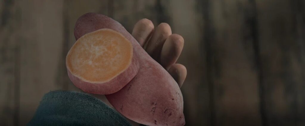 In order to create this image I downloaded a picture of a yam from Adobe Stock, got the photo of the hand from the the movie’s IMDb and used Pixlr to put everything together.