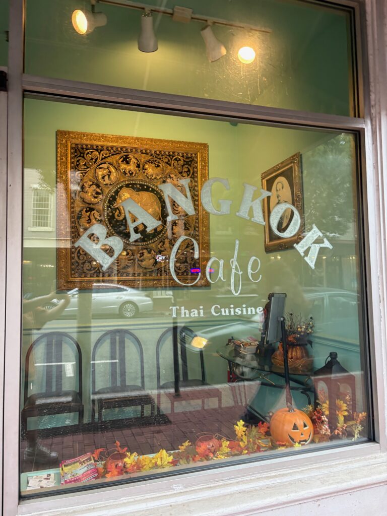 I really enjoyed viewing the typography on this window. To me it was easy on the eyes and it doesn’t have too much going on. I especially like how each word section is in a different font. Yet somehow they all work well with each other (in my opinion). The ‘Bangkok’ text is curved which also adds to the design. I find ‘Cafe’ and ‘Thai Cuisine’ falling under the curve to be visually pleasing. The kerning isn’t too wide yet there is a clear distinction between each letter. Typography plays an important part in how well a design comes together.