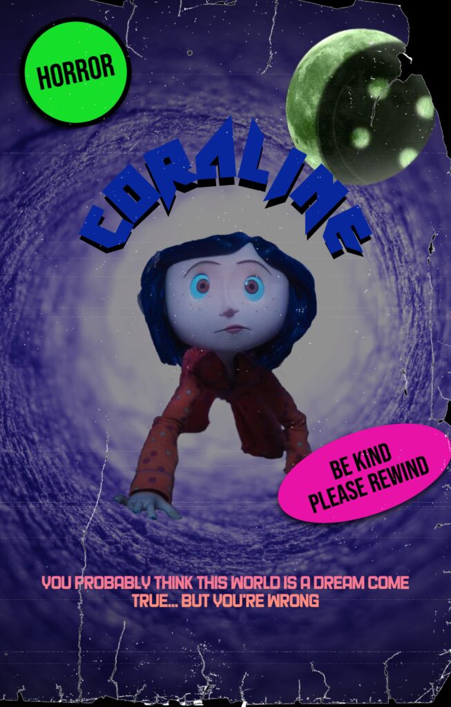 It was a Thursday night when I was out with my friends and the topic of our favorite movies came up. Classics such as Clueless, Pride & Prejudice, Back to the Future and more were brought up. I brought up one of my favorite movies, Coraline. I have always been intrigued by the film due to production, editing and impeccable soundtrack. Someone overheard our conversation and interrupted us. This lady told us that she works with her local film club to design graphics for indie films. She told us that she wanted the members of her club to practice working with photo editing skills to improve their graphic design skills. We started talking about possible ways to help her club members hone in on their skills. We finally came up with an idea and she invited me to her club’s next meeting to help her execute the idea.